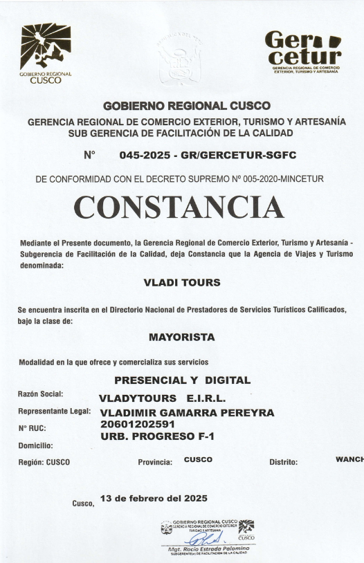 En Vladitours contamos con una amplia experiencia es por eso que siempre estamos pensando en ofrecerle momentos inolvidables. Te invitamos a conocer todo el Perú y sus encantos con una selección de programas culturales, gastronómicos y contemporáneos que han sido diseñados por especialistas en turismo cultural, turismo de aventura, viajes en familia, románticos que desean que descubras los misterios que posee el Perú
